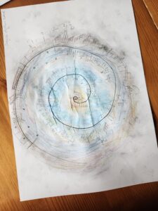 In order to create a background for these themes and loops, the piece has a musical layer of a harmonic background. This is mostly in the Busy Drone part and sometimes joined by the instruments to create more depth. The harmonic background undergoes a “progression”, not as much a progression of individual chords, but rather a progression of clouds of colours/harmonies. The progression of “pitch colour clouds” is based on the succession of the following images: