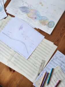I translated each of these ‘images’ into pitches through an intuitive and synesthetic process. I have a form of synaesthesia that is not directly visual, but gives me a very strong association between colours and pitches. I also have a strong association between visual or perceived tensions and intervals (=tensions between notes). This allows me to make a musical “translation” of sensory information and the effect it has on my inner landscape.